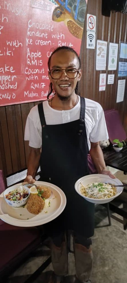 You will be seated on a wooden deck with a panoramic view of the ocean and the sound of the breaking waves in the background. We offer a western style breakfast daily, included in your room rate.